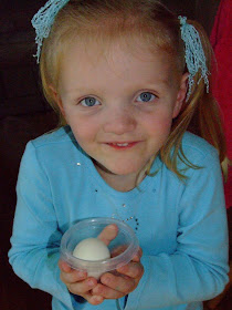 Sadie loves her some eggs. She would be happy to have eggs at every meal. She can't remember the different names for the different styles of eggs, especially her favorite, hard boiled. So she says, "I want my eggs like this." And then she'll hold her hand like this: